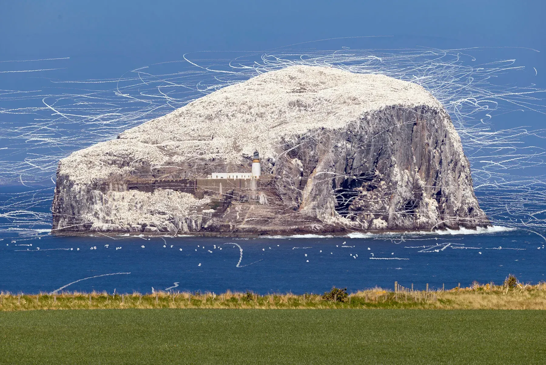 Each of the white lines is the movement of the gannets, over a few seconds.